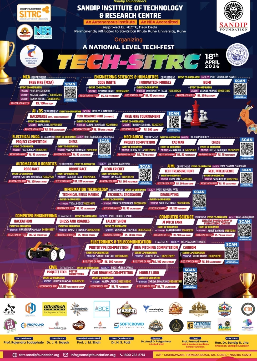When you join Sandip Institute of Technology & Research Centre (SITRC) at Sandip Foundation, you are joining one of the best engineering colleges in Nashik and indeed the top engineering college in Maharashtra. In the era of dynamism where things are virtually moving at the speed of light, it is very important that you are prepared to innovate, accelerate and create value at the same pace. And that’s the mission we have at SITRC. Whatever program you join us for, be assured that you will be taught by the world-class faculties and supported by the award -winning Career & Employability Services team. Studying at the engineering college in Nashik has its own perks. You will be amongst a select group of graduates who are favored by recruiters from all over India. Undoubtedly, we are the best engineering college in Nashik.